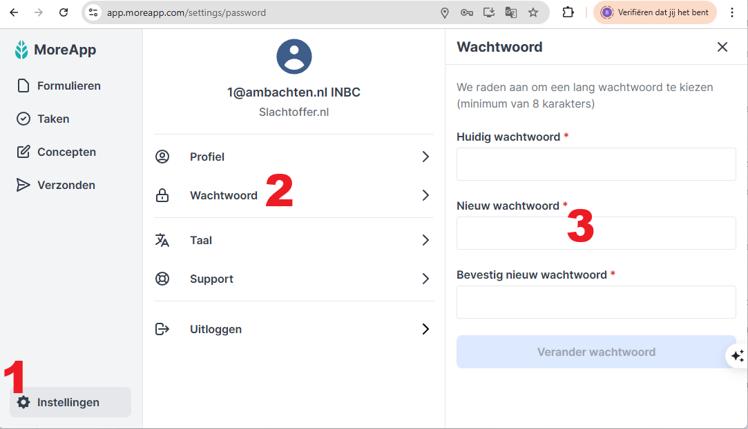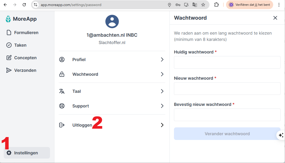 Je kunt inloggen op het Platform of met de Web App. MoreApp ondersteunt de laatste stabiele versie van Chrome, Firefox, Safari en Edge.